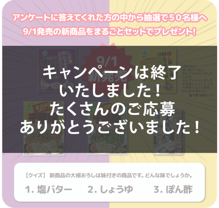 9月のプレゼントキャンペーン 終了のお知らせ