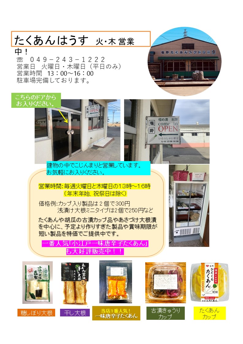 工場直売のご案内 (火曜日と木曜日のみ開催!)