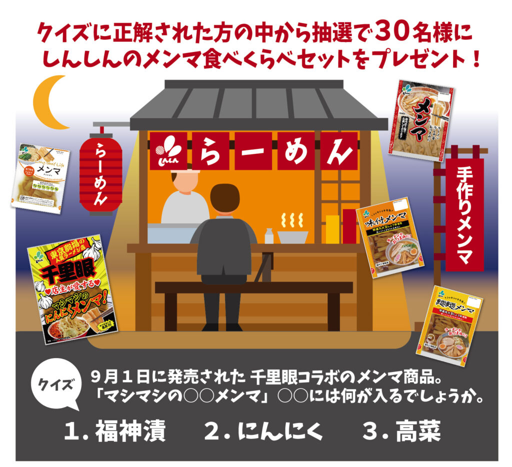 「マシマシの○○メンマ」○○には何が入るでしょうか。 1. 福神漬