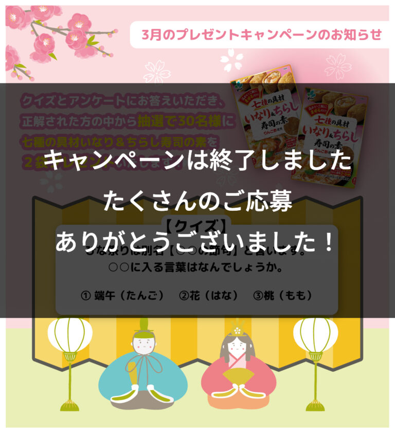 3月のプレゼントキャンペーン終了のお知らせ