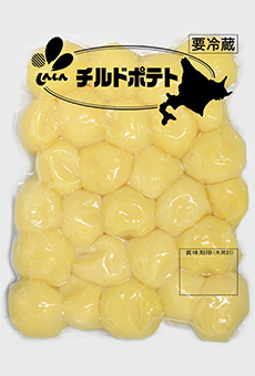 北海道のじゃがいもの皮をむき、ボイルして真空パックした製品で、ホール(丸)タイプにしています。