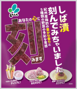 紀州産梅酢の豊かな香りと5種類の野菜の多彩な食感が楽しめるしば漬です。食べやすく刻んでありますのでそのままお召し上がりいただくのはもちろん、マヨネーズと混ぜてタルタル風ソースに、ごはんと混ぜておむすびやパスタの具材としてもご使用いただけます。