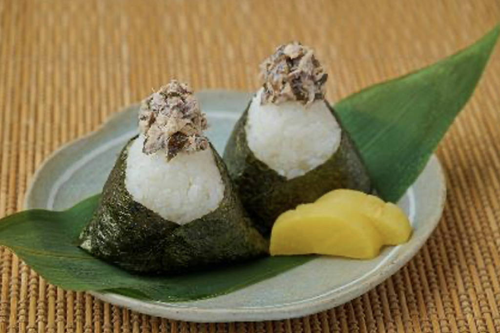 ④ ご飯の中央に③をのせ、成型してのりを巻いて完成。