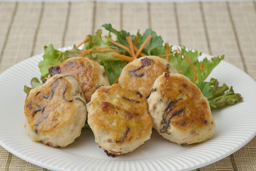 ①鶏ひき肉と調味Aを加えて混ぜる。 ②種を取った味梅と塩こんぶ、約0.5mm角に切ったチーズ、さらに調味料Bを加えて混ぜる。 ③②を一口サイズに成形し、フライパンにごま油を熱して片面を5分焼いたら裏返し、フタをしてさらに5分焼いたら完成。