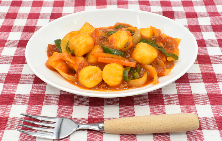 ④フライパンに水を切った③を入れてさっと炒めてナポリタンソースをあえれば完成です。